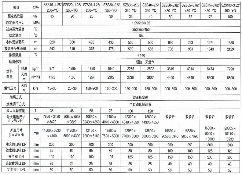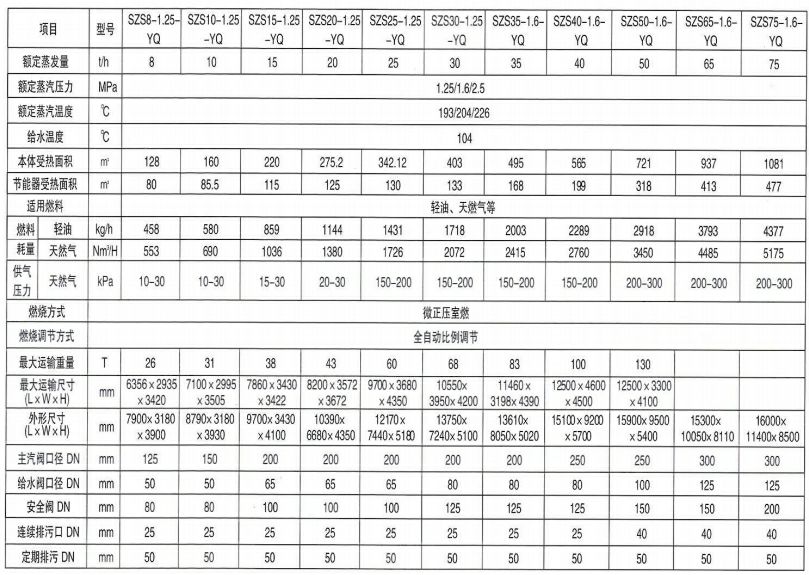 5、表中產品額定蒸汽壓力和蒸汽溫度可根據用戶需求要變更。