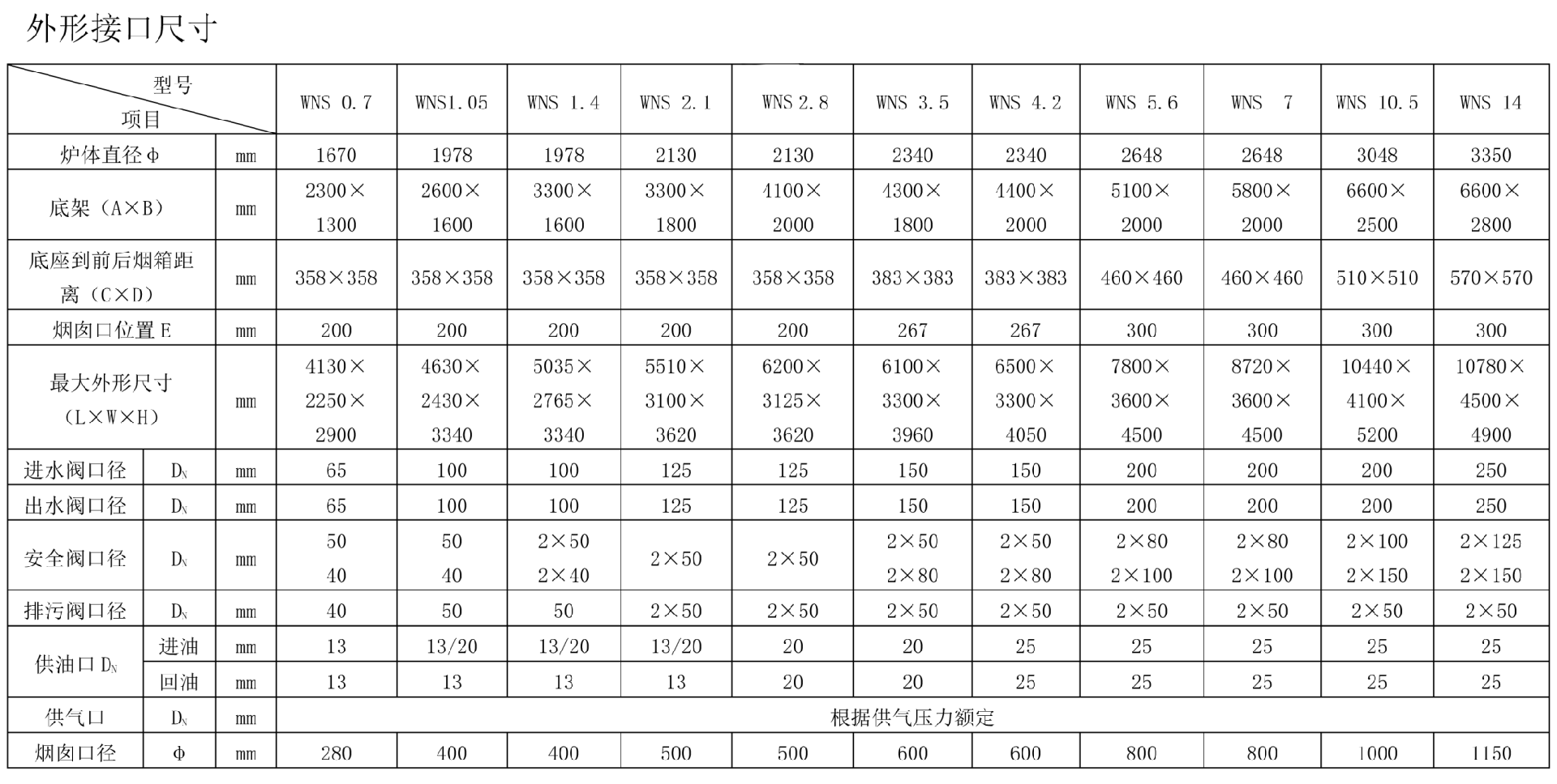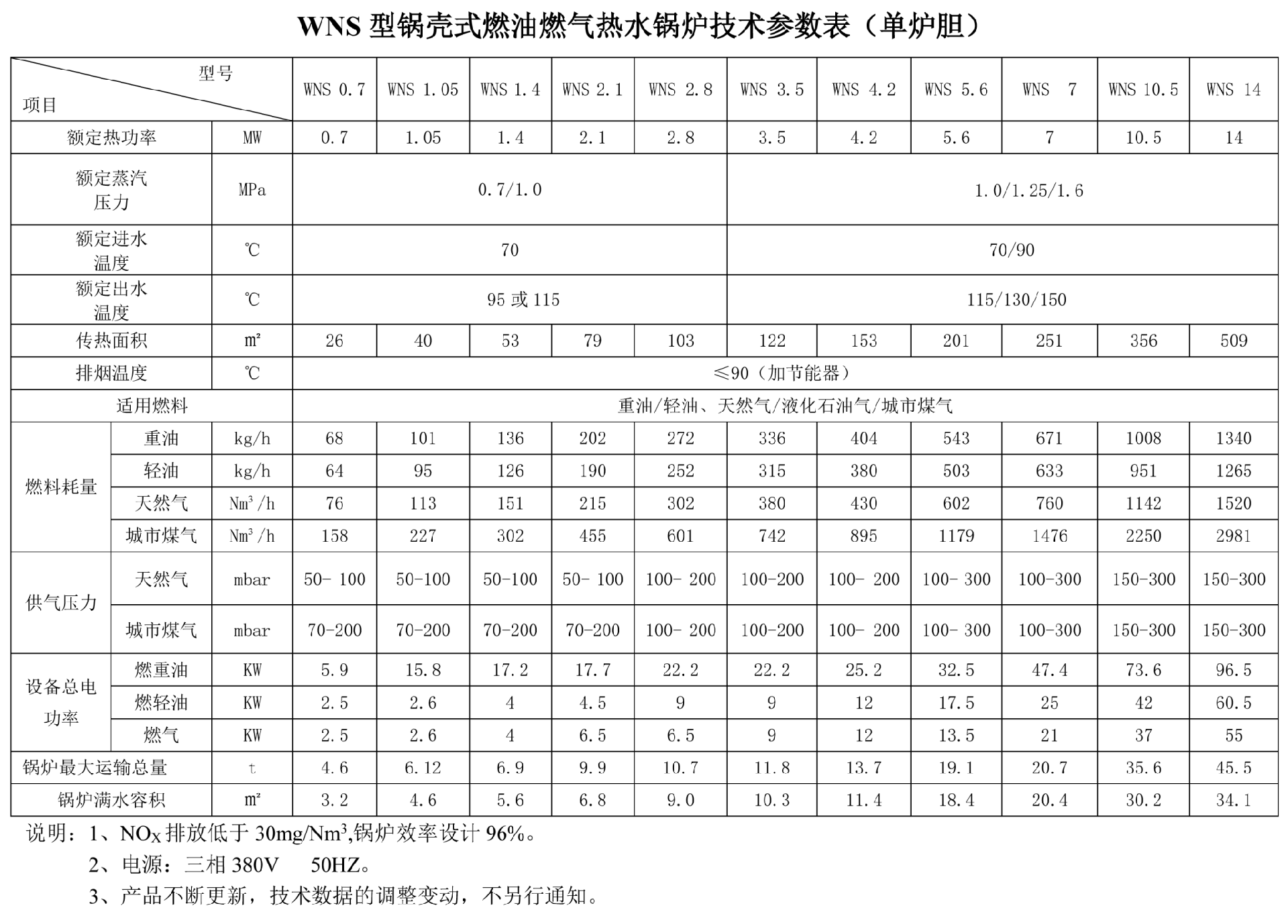 天鹿牌WNS型鍋殼式燃油燃氣熱水鍋爐主機由鍋殼、前后管板、波紋爐膽,回燃室、二回程煙管、三回程煙管、人孔、手孔、回水裝置、出水管座和集汽罐、前后煙箱、防爆門、底座等組成。鍋爐還配有燃燒機、自控系統、循環水泵、補水泵、水處理、節能器等輔機和閥門儀表。