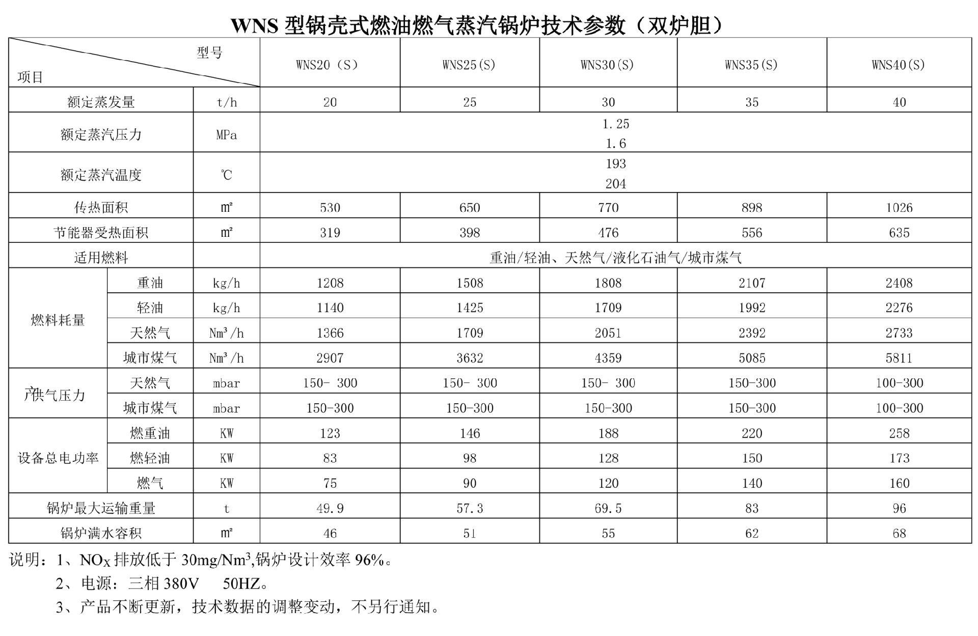 天鹿牌WNS系列雙爐膽鍋殼式鍋爐吸取了歐美國家鍋爐的特點和德國標準的優點,結合天鹿鍋爐的專利和獨特的工藝,進行設計制造。
